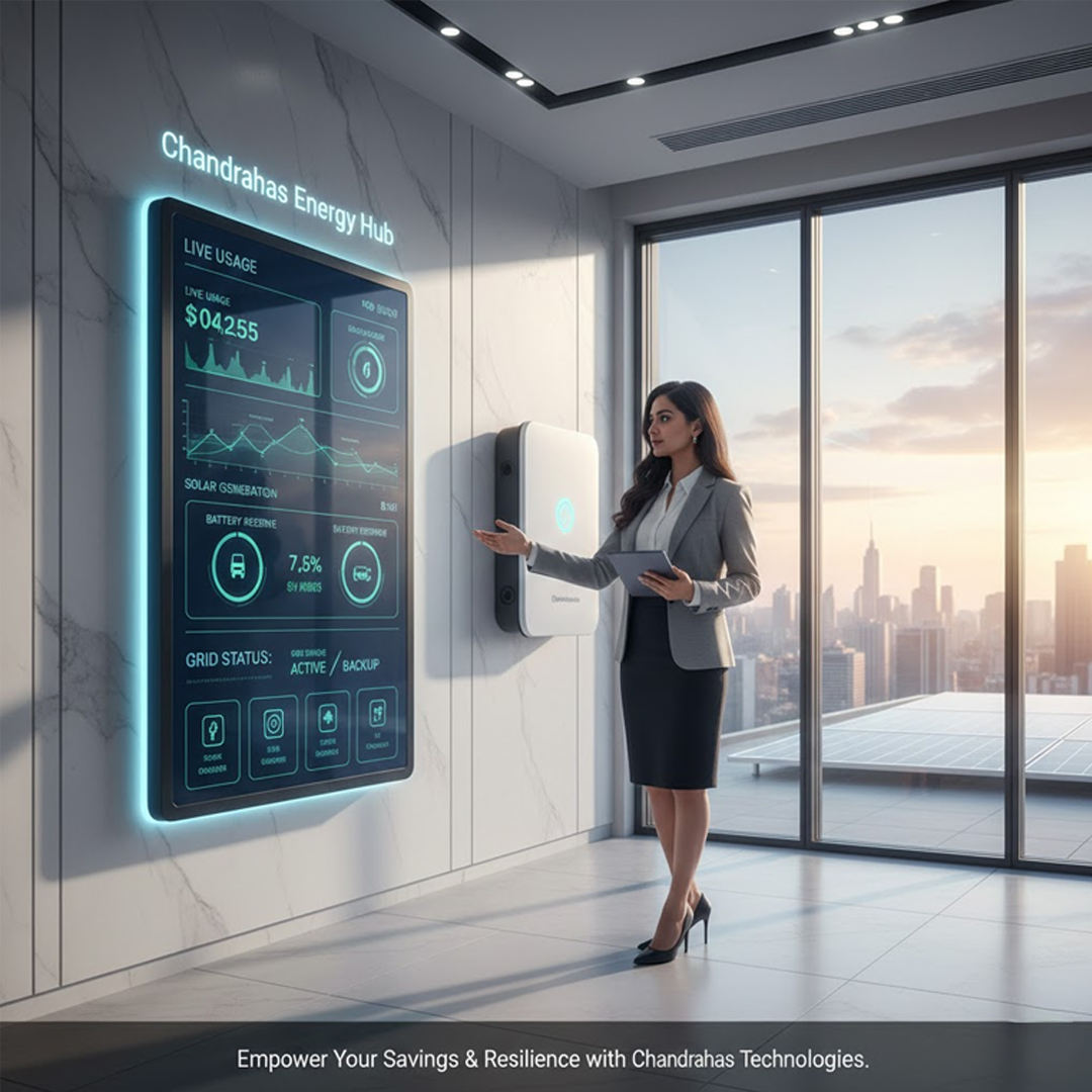 The Chandrahas ecosystem orchestrates every facet of your home’s power—from solar and backup battery systems to EV charging and grid power. It’s your ultimate, all-encompassing energy management solution, simplifying complex energy flows into a single, intuitive platform.